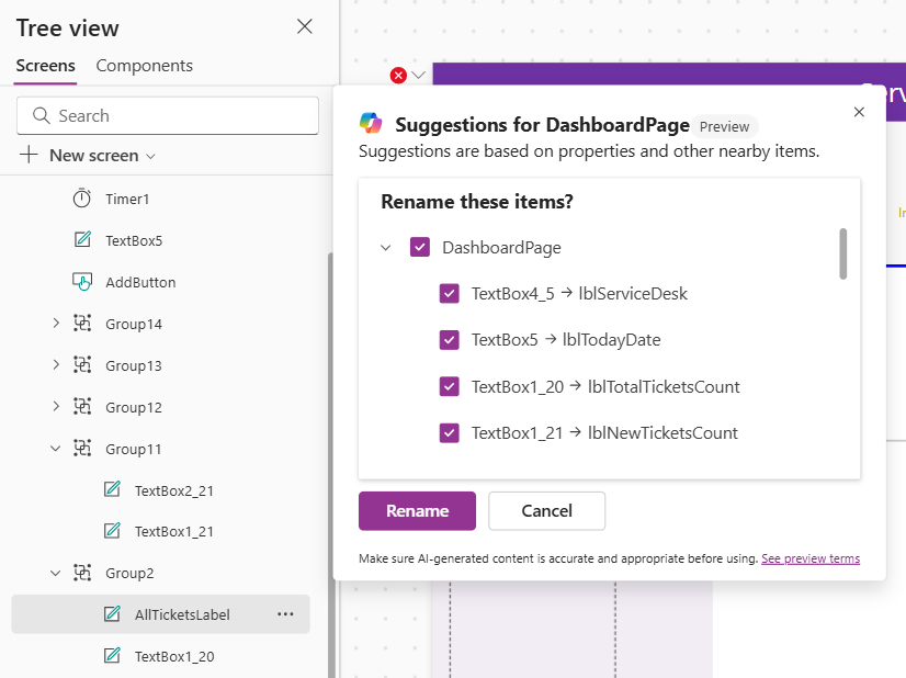 With the recent updates to Copilot in Power Apps, there's now a simple way to carry out this task. Copilot can automatically identify and rename controls based on their purpose and usage, resulting in easier to understand and maintain apps.